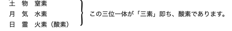 しかしながら、今日までは、大体「土」「水」――この二素が判っていたばかりで火素即ち霊素は判っていなかったのであります。